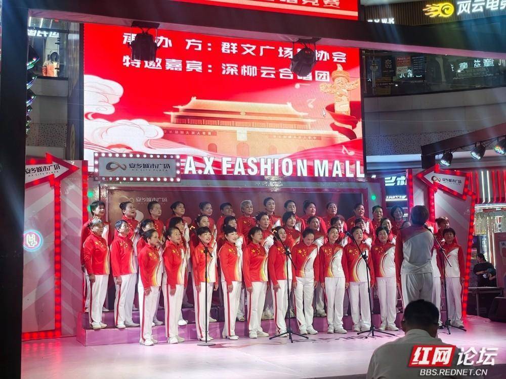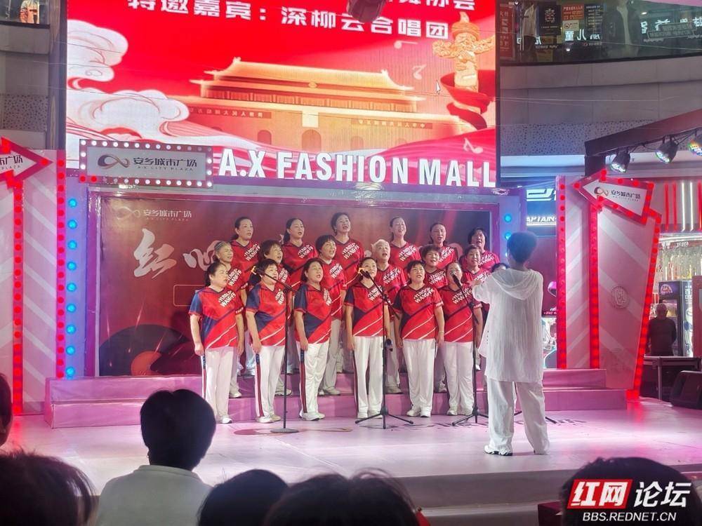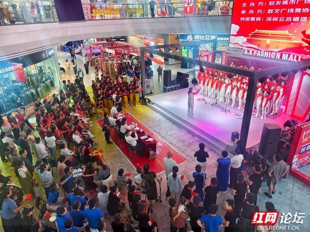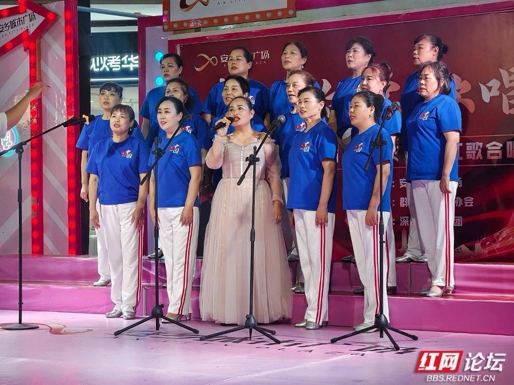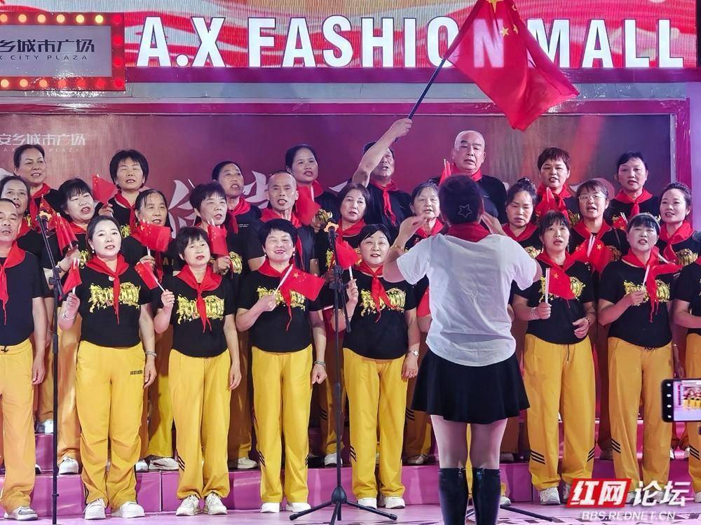 安乡城市广场国庆合唱活动燃动全城。(图源:侯若平)歌声激昂嘹亮,如潮水般回荡在夜空;台下,观众或凝神聆听,或轻声应和,手中挥舞的小国旗在灯光映照下熠熠生辉,与舞台交相辉映,汇聚成一片涌动的红色海洋。人们用歌声礼赞祖国的繁荣昌盛,抒发对美好生活的由衷感恩,更将对祖国的热爱融入每一句旋律、每一个音符之中。整个广场,处处流淌着炽热的家国情怀,激荡着奋进的时代脉搏。