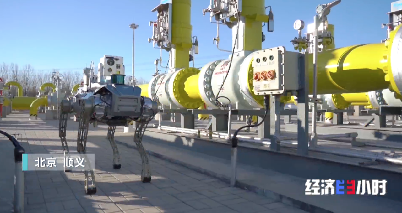 北京顺义,最新一代防爆四足机器人正在密集的管线之间穿梭,灵活越过障碍,精准对焦每一个阀门。有了它的保驾护航,这条保供生命线更加安全顺畅地运行。