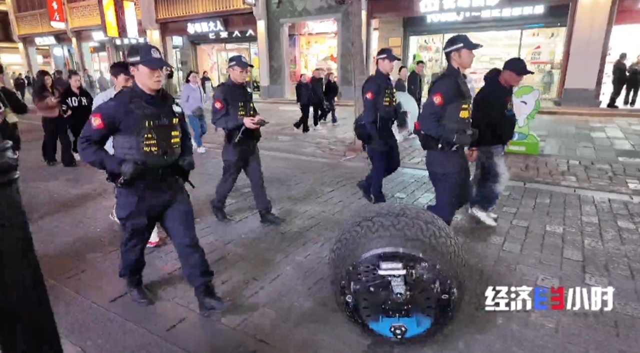 浙江温州,巡特警大队巡逻队伍里,出警巡逻的铁球引来不少市民围观。这款球形机器人可以实现“七十二变”,会游泳,水陆两栖,抗洪救援、化工厂巡查都是它的长项。