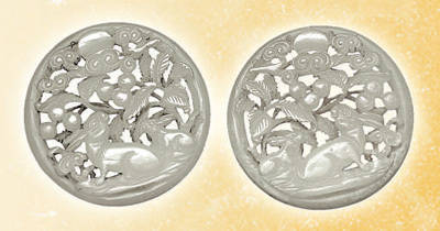 r早在《楚辞·天问》中,屈原就曾将月亮与兔联系在一起,并形成了流传后世的“月兔说”。在东汉时期,“玉兔捣药”成为画像石的装饰纹样。唐宋时期,中秋、嫦娥、玉兔等元素被整合并得以沿袭。到了明清时期,兔成为绘画、玉雕、瓷器等领域广泛出现的题材。其中,玉雕中的兔,又时常与灵芝等元素结合,着重表现兔子的动态和神态,如四足弯曲匍匐、前双爪捧物、长耳披于背上等细节,寓意吉祥长寿等。这件青白玉镂空东升图环饰,其表面可见明代典型的打磨痕迹,玉雕技法呈现当时的审美风尚,是研究明代玉器工艺和宗室用玉制度的重要实物资料。